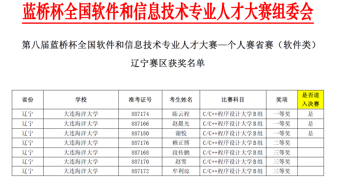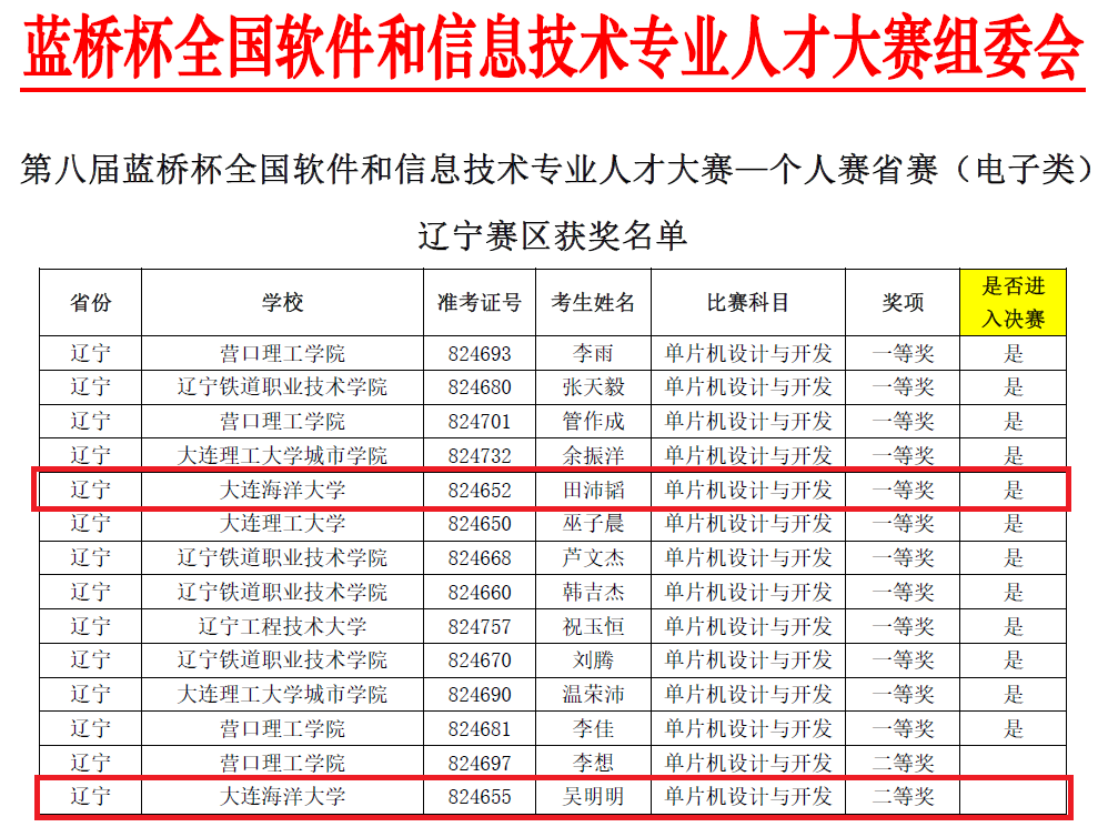 近日,第八届蓝桥杯全国软件和信息技术专业人才大赛辽宁赛区在大连理工大学城市学院和辽宁师范大学成功举办。我院组织9名学生参加了电子类和软件类比赛并取得佳绩。计算机14级学生陈云程、赵晨光和谢悦荣获C/C++程序设计大学B组一等奖,电子14级学生田沛韬荣获单片机设计与开发组一等奖,计算机14级学生赖正博荣获C/C++程序设计大学B组二等奖,电子14级学生吴明明荣获单片机设计与开发组二等奖,计算机14级学生段传鹏、赵雪和牟利琼荣获C/C++程序设计大学B组三等奖。此外,田沛韬、陈云程、赵晨光和谢悦同学还将代表学校参加在北京举办的全国总决赛。