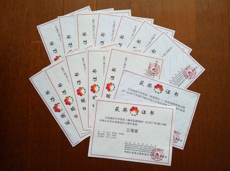 我院由李然老师带队、计本2014及通信2014同学设计的作品《海洋监测网站》、《虚拟现实—齿轮泵的组装与展示》、《渔夫与企鹅》分别参加了“软件应用与开发”类、“微课与辅助教学”类和“动漫游戏”类的决赛,同学们经过精心准备、激烈角逐,最终获得大赛三等奖。