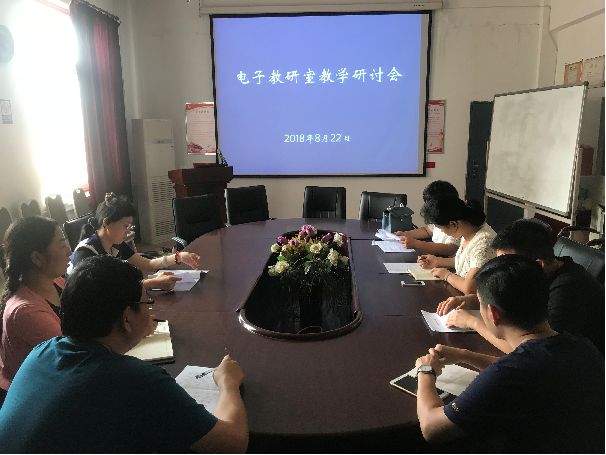 2018年8月22日,电子教研室围绕课程建设、教学改革等方面内容在我院会议室召开了教学研讨会,我院副院长缪新颖出席了本次会议,电子教研室全体教师参加了会议,会议由电子教研室主任曹立杰主持。