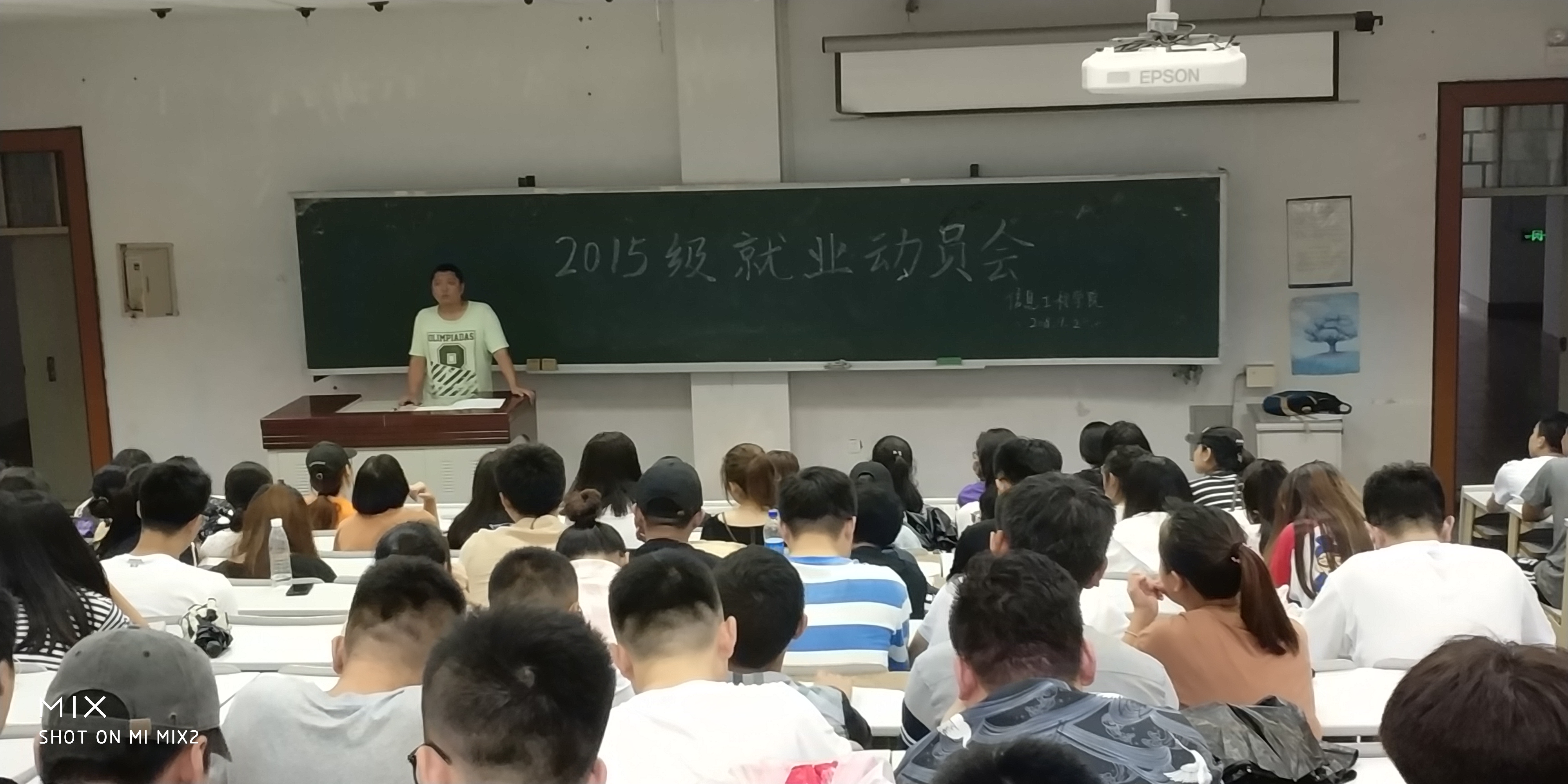 93日,信息工程学院2015级就业动员会在综合实验楼阶梯二教室召开,2015级全体同学参加会议,会议由辅导员于茂林主持。