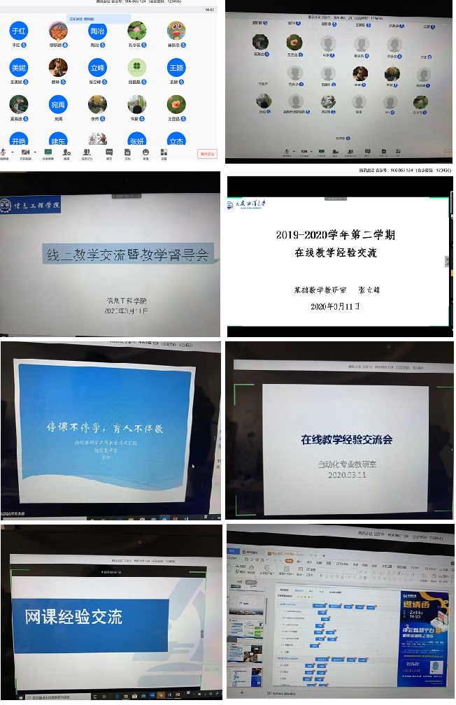缪新颖首先介绍了学院督导组的工作职责,明确疫情期间采取切实可行的工作方案继续开展教学环节检查督导,积极响应“停课不停教、停课不停学”的号召,充分实现“学习不延期,质量有保障”的工作目标。会议内容围绕各教研室如何开展线上教学的前期准备工作、如何开展教学与督导、如何解决存在的问题和下一步工作计划等方面进行PPT汇报。各教研室主任详细介绍了开学以来课程建设及网络开课运行情况,积极组织教师参加网络培训、充分开展在线教学研讨、扎实推进督导机制、严格制定网课预案、汇总平台使用经验及及时解决学生问题反馈,针对网络教学运行实际,科学调整工作方案,确保学生受教质量。