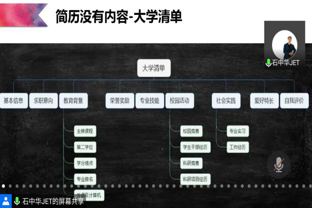 通过此次会议,学生们对简历撰写和面试技巧有了进一步的了解与认识,同时也明白了本阶段最重要的任务,即珍惜当下,抓住每一分每一秒去努力学习,充实自己,丰富自己。