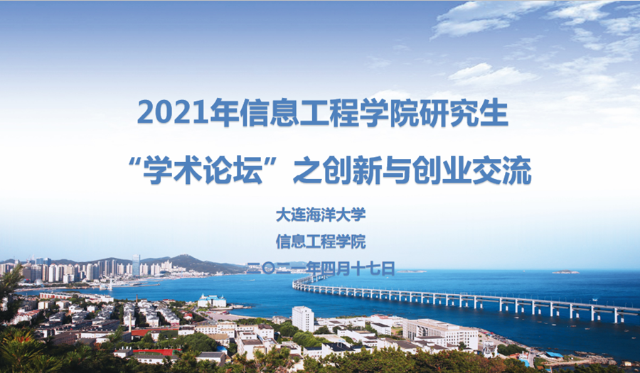 20214月17日,为充分发挥学科科学研究主力军作用,促进科学研究融通创新,提高学术探索与服务国家和地方需求融合紧密度,增强海洋水产领域研究生自主创业能力,信息工程学院通过腾讯会议方式线上成功举行“2021年研究生学术论坛之创新与创业交流论坛”
