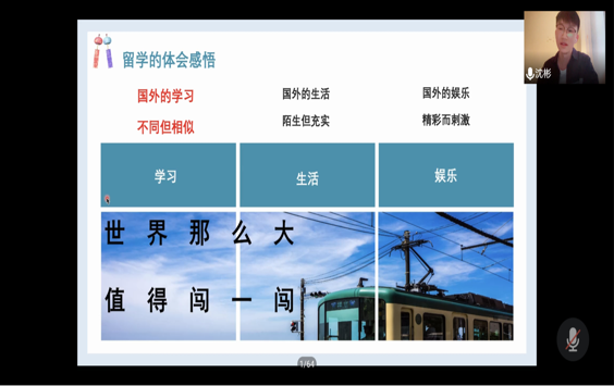 受邀本次主讲嘉宾沈彬是信息工程学院2016级自动化专业毕业生。沈彬于2019年4月到2020年3月前往日本东京海洋大学交换留学,2020年7月考取日本东京海洋大学信息通信工学专业研究生。