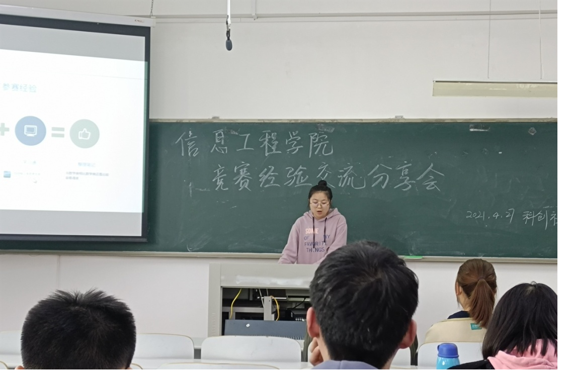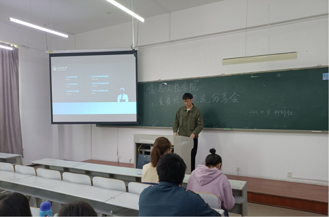 为提高学生对科技创新竞赛的认知,鼓励学生积极参加竞赛。信息工程学院于4月27日17时30分在獐子岛教学楼123召开了“科创竞赛经验交流分享会”。参加会议的有三名科创竞赛经验丰富的学生代表及2019级部分学生,会议由卜梦琳主持。