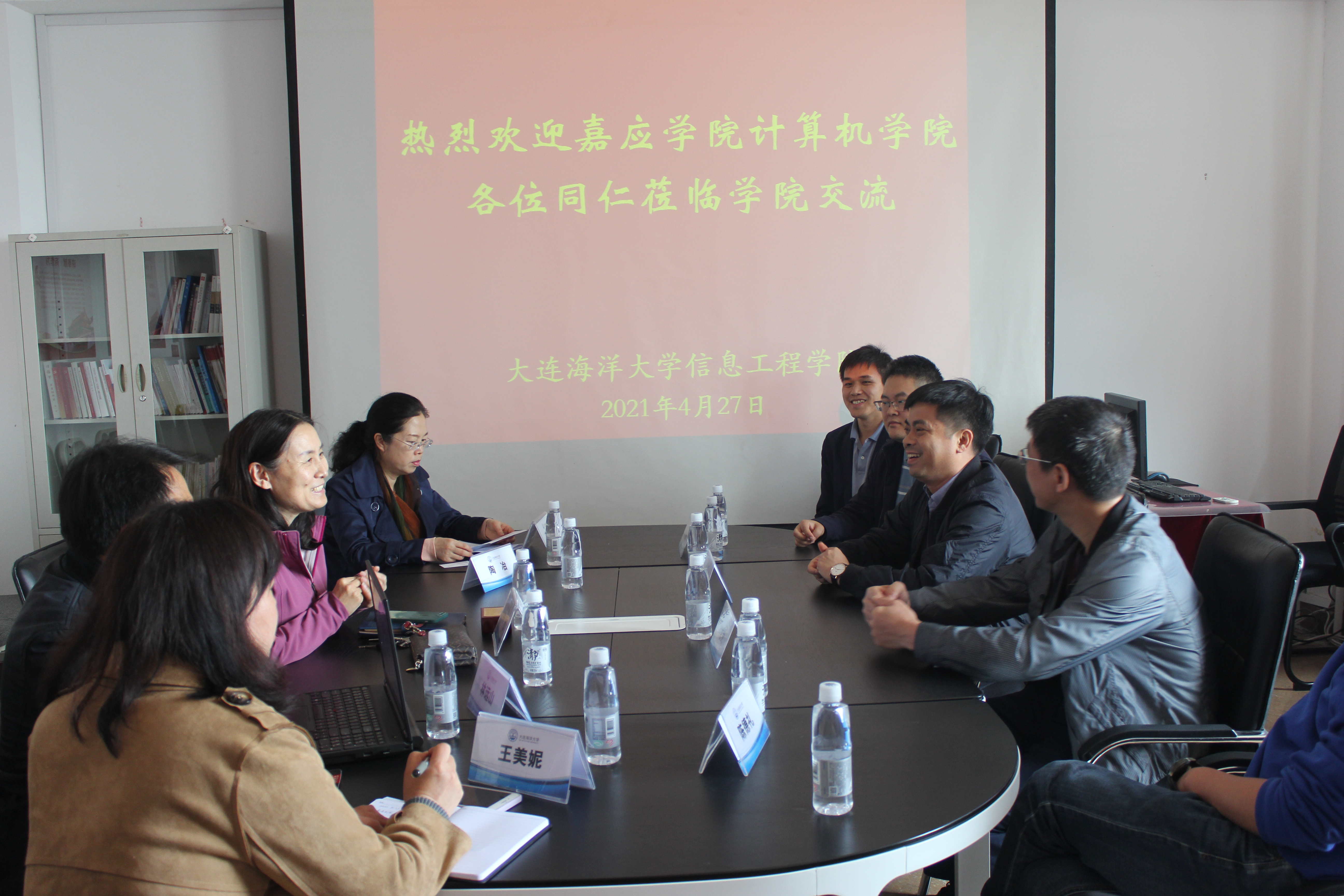 427日下午,广东嘉应学院计算机学院应邀来我院调研,我院院长于红在学院会议室接见叶忠文院长一行,学院计算机专业教研室主任及相关实验室教师参加座谈。