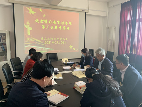 56日下午,信息工程学院党总支在学院党员活动室开展第三期党史学习教育读书班集中学习。党总支委员、支部书记参加了学习会议。会议由党总支书记于振作主持。
