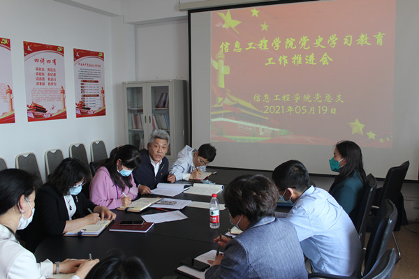 5月19日下午,信息工程学院党总支在学院党员活动室召开党史学习教育工作推进会,学院党总支委员及党支部书记参加了此次会议,会议由党总支书记于振作主持。