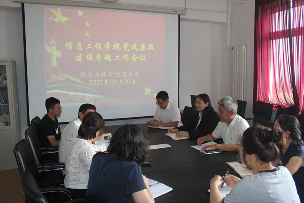 为加强学院反腐倡廉建设,筑牢党员干部党风廉政纪律,强化全体教师思想道德防线。9月10日下午,信息工程学院党总支在学院会议室召开了党风廉政建设专题工作会议,学院党总支委员、党支部书记参加了会议,会议由党总支书记于振作主持。