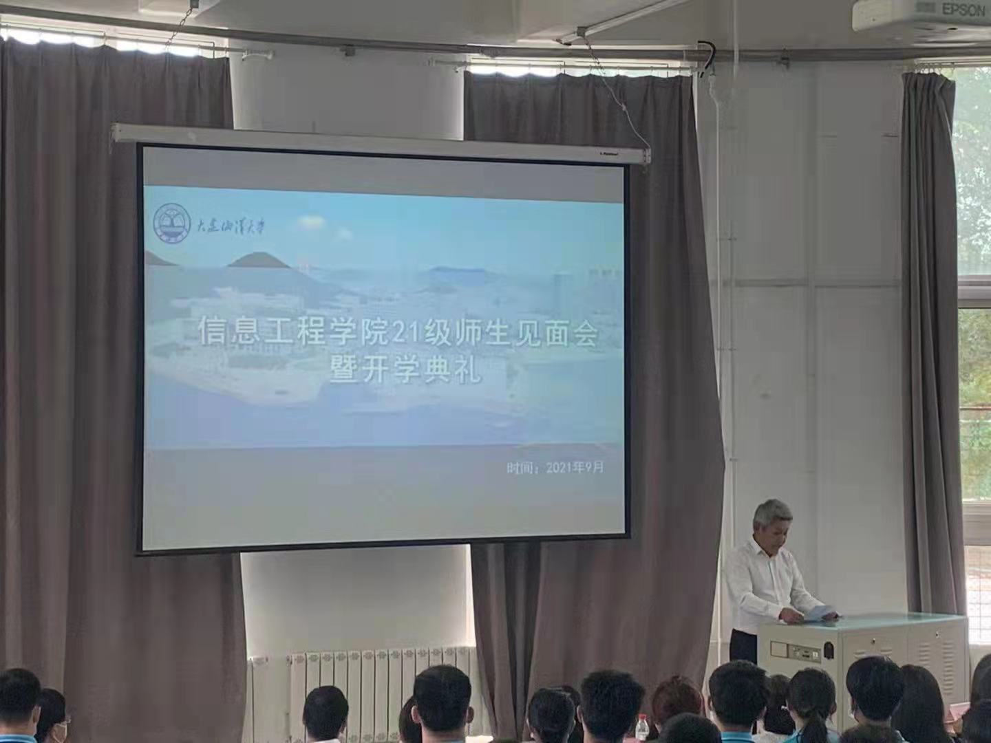 9月25日下午,信息工程学院在渤海校区阶梯三举办了2021级新生师生见面会暨开学典礼。学院班子成员、各专业教研室主任、新生班导师、学院团委书记、2021级辅导员褚广为及2021级全体新生参加了本次会议。会议由学院党总支书记于振作主持。
