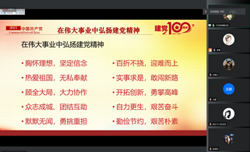 于红带领大家共同回顾了百年建党历史上的重大事件,回望过往的奋斗路,眺望前方的奋进路,必须把党的历史学习好、总结好,把党的成功经验传承好、发扬好。她深刻阐述了建党精神,深刻解读了红船精神、井冈山精神、长征精神、延安精神以及“两弹一星”精神,她强调共产党人的精神谱系中的诸多精神,都是伟大建党精神派生出来的,是伟大建党精神的丰富和发展。最后,她强调全体党员要在伟大事业中弘扬建党精神,从伟大建党精神中吸收营养、汲取力量,以永不懈怠的精神状态和一往无前的奋斗姿态,乘势而上、接续奋斗。
