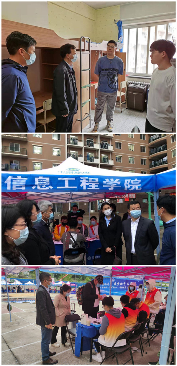 2021年10月9日、10日,信息工程学院顺利完成2021级研究生迎新工作。68名研究生新生加入到了信息工程学院研究生大家庭。虽然天气寒冷,但是研究生志愿者学长学姐们满怀热情地为朝气蓬勃的入学新生办理入学流程并讲解相关安排。校长宋林生对信息工程学院研究生新生寢室进行了亲切走访,对新同学的到来表示欢迎,并就同学们的学业规划和职业规划和同学们进行交流,鼓励同学们一定要将研究生学习生涯的1000多天时间用到极致,不断充实和提升自己,将来取得成绩一定要告诉学校,让学校以你们为荣。信息工程学院院长于红、党总支书记于振作、副院长曹立杰、党总支副书记史成锴、辅导员张萌莎也来到报到现场一起迎接2021级研究生新同学,送去学院对新同学的关心和关怀。