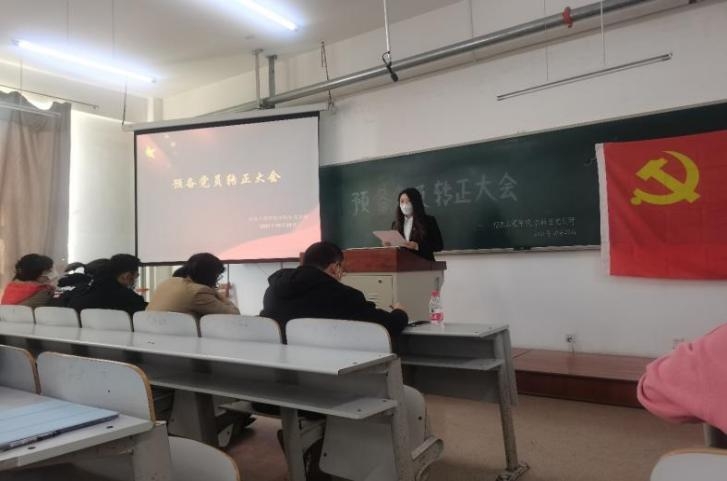 信息工程学院本科生党支部于2021年10月28日13:30在獐子岛教学楼103教室召开了预备党员转正大会。信息工程学院党总支副书记范庆华、支部书记王建东以及全体正式党员和部分预备党员参加此次会议。会议由杨宇萌主持。