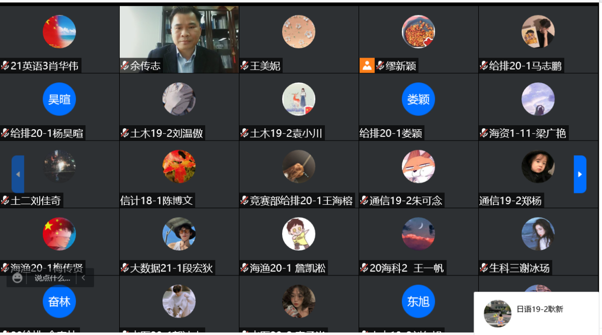 11月15日,我院举行线上大连海洋大学“实践教学及创新创业教育活动周”系列讲座,邀请大连市首批创业导师、大连中天致远科技有限公司总经理余传志做主题报告,全校10个学院的学生及部分教师共350余人参会,会议由我院副院长缪新颖主持。