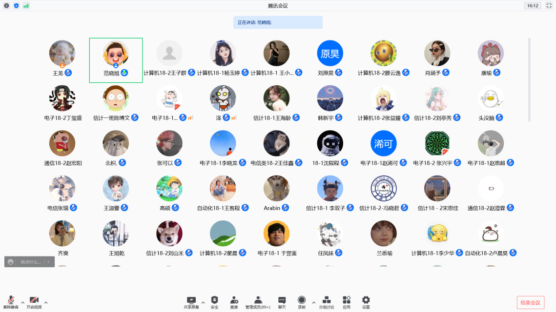 为更好地关心疫情期间同学们的身心健康、生活学习近况,及时解答同学们各方面的疑惑,信息工程学院在2021年11月20日18:00于线上召开了2018级年级大会。会议由2018级辅导员范晓旭主持,2018级全体学生参会。
