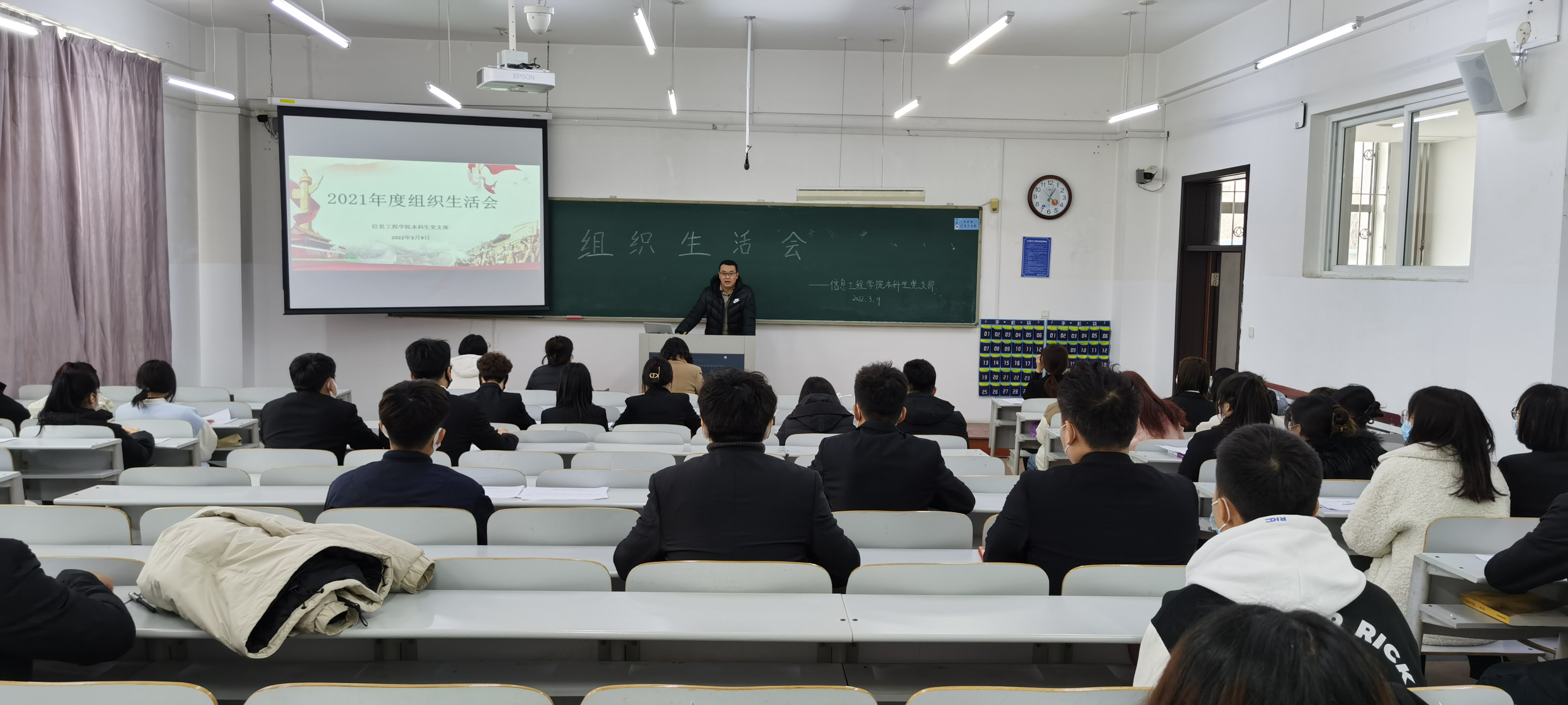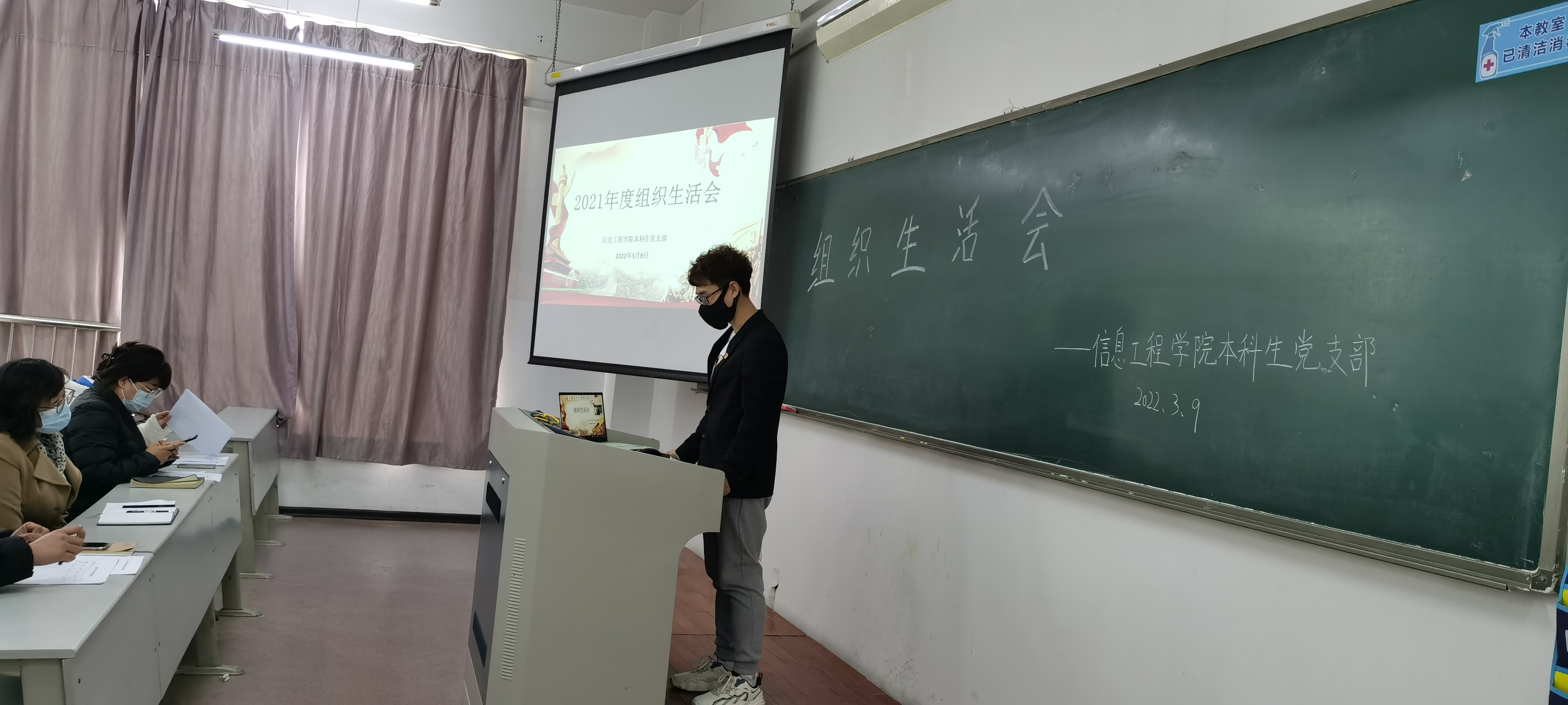 信息工程学院本科生党支部于3月9日13:00在獐子岛教学楼131教室召开2021年度党组织生活会。信息工程学院党总支副书记范庆华、团委书记王建东、各年级辅导员及学生党员、预备党员参加本次大会。本次会议由杨宇萌主持。
