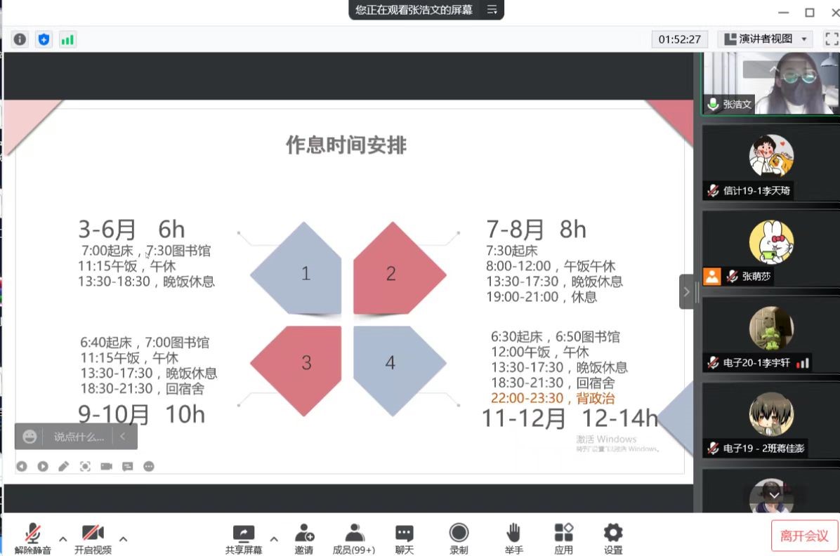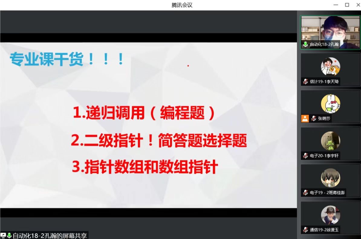 为进一步激发学生的考研热情,明确考研目标,掌握考研技巧。信息工程学院于2022513以腾讯会议形式举办研途畅享,助力绽放考研经验交流会。学院副院长曹立杰、党总支副书记范庆华、2019级辅导员张萌莎出席会议。本次会议由李天琦、李宇轩主持,学院2019级、20202021级部分学生参会。
