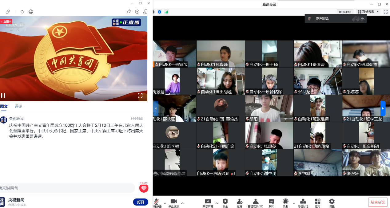 2022年5月10日9:30,中国共产主义青年团成立100周年大会隆重举行,习近平总书记在会上发表重要讲话。信息工程学院全体学生通过线上线下相结合的方式观看了此次会议直播。