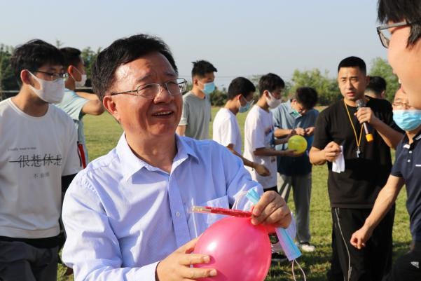 活动以小组为单位,设置了“五彩绳大作战”、“趣味顶蛋”、“神笔马良”三个项目。赛场上,师生分工协作、相互配合,同学们的欢呼声热闹激昂,为整场活动营造了愉快热烈的氛围。比赛结束后,宋林生为全体师生发放粽子。