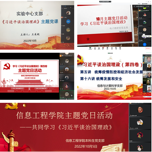 10月5日,信息工程学院党委组织各党支部开展学习《习近平谈治国理政》第四卷主题党日活动。