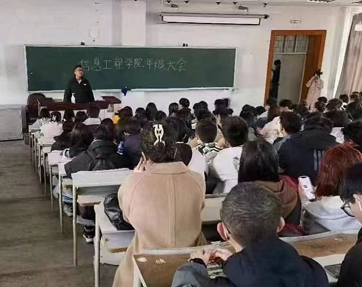 为了帮助同学们尽快适应新学期校园生活,增强大家的学习意识、纪律意识、安全意识,信息工程学院于2023年3月9日召开年级大会。党委副书记范庆华、各年级辅导员及学院全体学生参会。