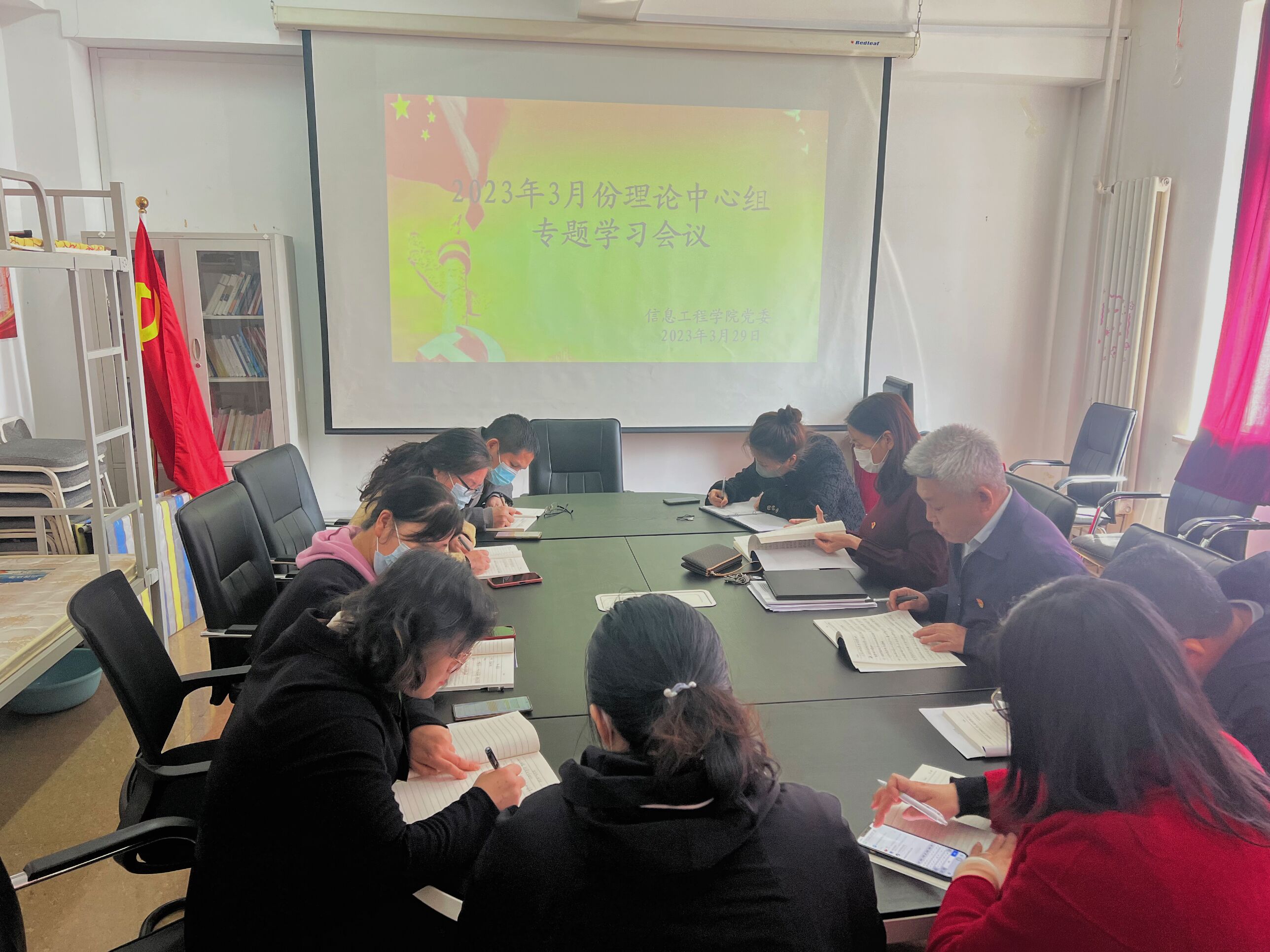 3月29日,信息工程学院党委在学院会议室召开2023年3月份理论学习中心组专题学习会议。学院理论学习中心组全体成员参加了会议,本次学习会议由党委书记于振作主持。