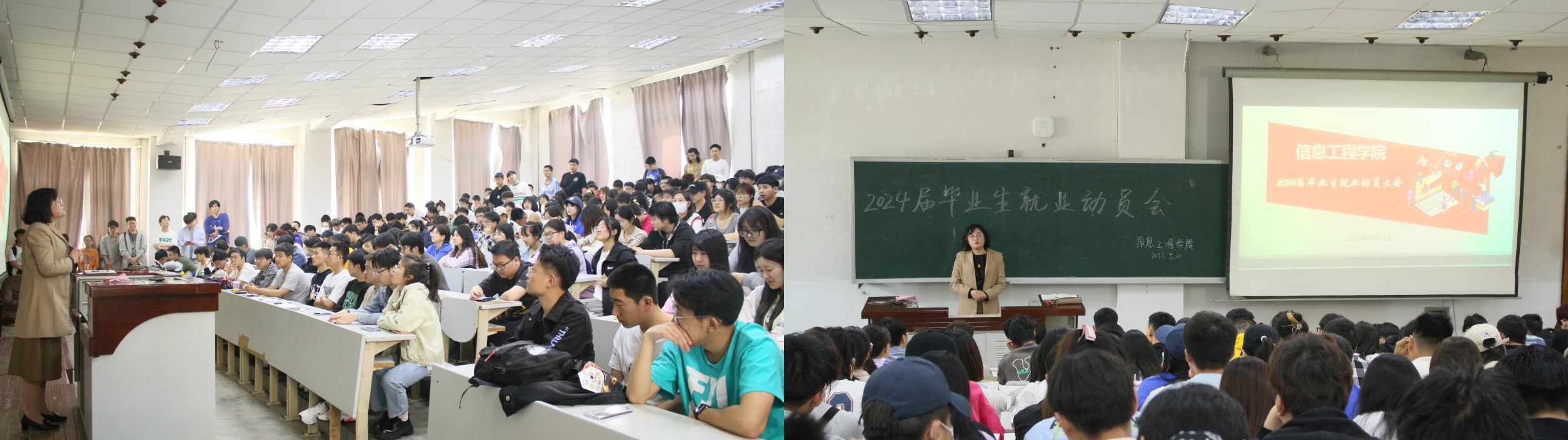 信息工程学院于2023年5月11日召开2024届毕业生就业动员大会。信息工程学院党委副书记范庆华、2020级辅导员修恒哲及2024届毕业班全体成员参加本次大会。