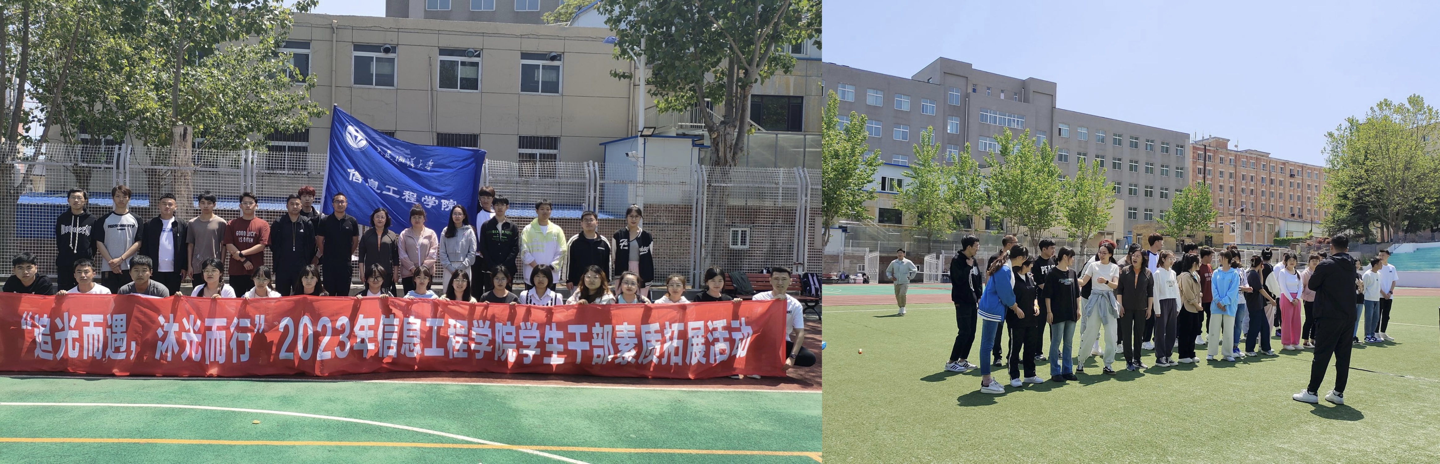 为了提高学生干部的综合素质,锻炼团结协作能力,培养团队意识,信息工程学院于2023年5月19日下午在黄海校区开展“追光而遇,沐光而行”2023年学生干部素质拓展活动。信息工程学院党委副书记范庆华、2019级辅导员张萌莎、2020级辅导员修恒哲、2021级辅导员褚广为、2022级辅导员范晓旭以及2020级全体学生干部参加。