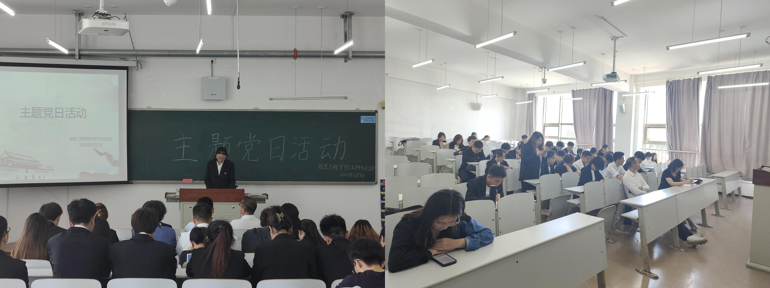 信息工程学院本科生党支部于2023年6月7日在獐教103教室召开了主题党日活动。党委副书记范庆华、党支部书记修恒哲以及学生党员参加本次大会。会议由高艺祯主持。