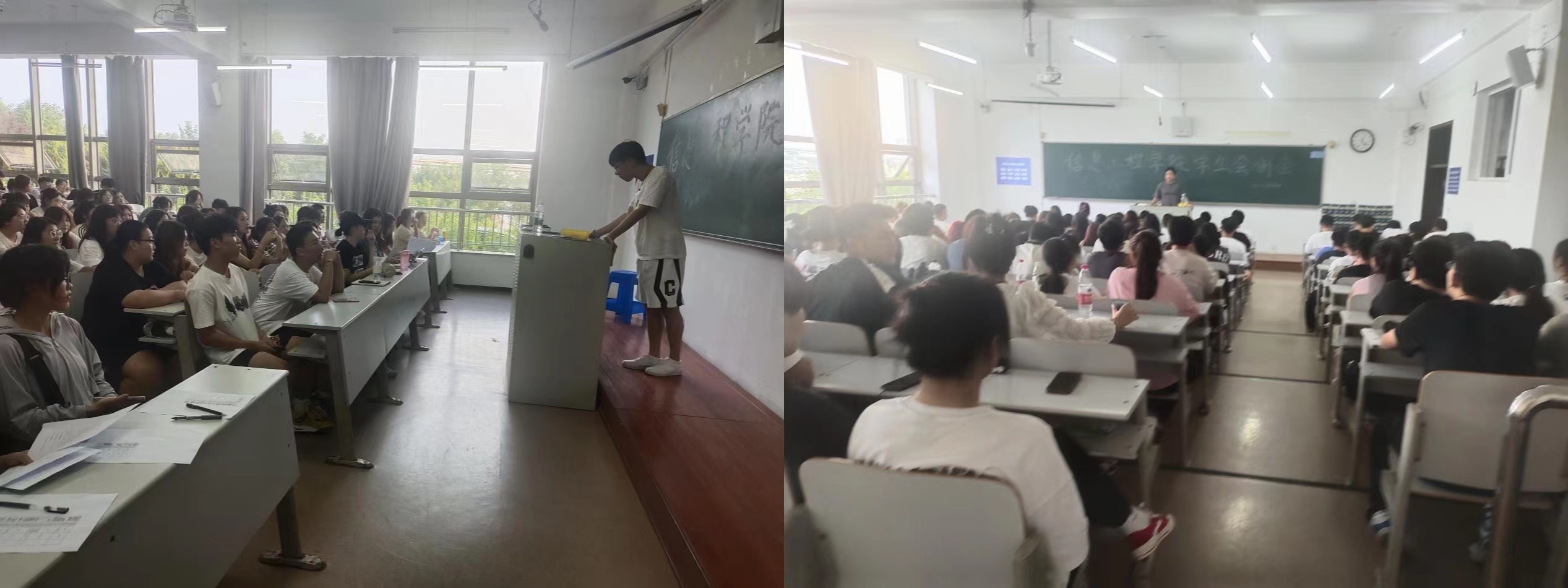信息工程学院于2023年9月4日17:00在獐教107教室召开2022级信息工程学生干部例会,2020级主席团部长团、2021级主要学生干部以及2022级全体学生干部参会,会议由黄靖宸主持。