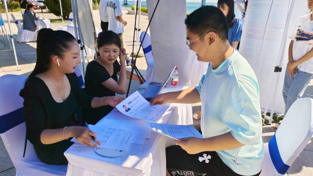 在双选会上,毕业生与心仪企业面对面洽谈,了解岗位的能力要求、发展前景、薪资待遇等相关信息并郑重提交个人求职简历。本次双选会27家企业到场参会,提供就业岗位756个,330名信息工程学院毕业生现场参会,递交简历1100余份,其中107人与招聘单位达成了初步就业意向。初秋骄阳的热烈与信息骄子的求职热情交相辉映,成为海边一道亮丽的风景线。