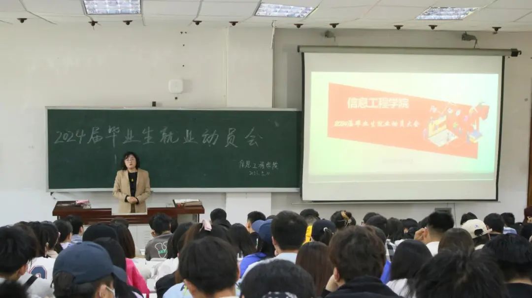 信息工程学院于2023年5月11日召开2024届毕业生就业动员大会。信息工程学院党委副书记范庆华、2020级辅导员修恒哲及2024届毕业班全体成员参加本次大会。