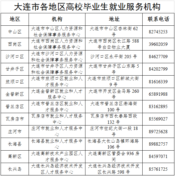 毕业生落户。高校毕业生在连享受“先落户后就业”政策,本人及其配偶、未婚子女可在落户地公安派出所办理落户手续。