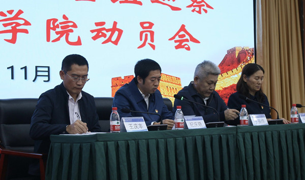 会前,纪庆晓主持召开了与学院领导班子成员的见面沟通会,通报了有关工作安排。会上,巡察组副组长、党委宣传部副部长王庆丰组织与会教职工、学生党员进行了问卷测评和知识测试。