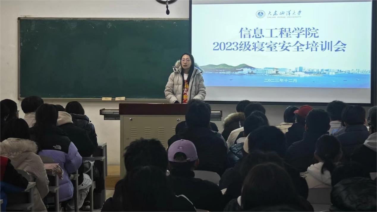 为保障学生冬季宿舍安全,提升宿舍长工作水平,我院于2023年12月14日在渤海校区二教117开展2023级寝室安全稳定教育暨工作培训大会,2023级辅导员张萌莎、宋子奇及52名寝室长参会,会议由张萌莎主持。