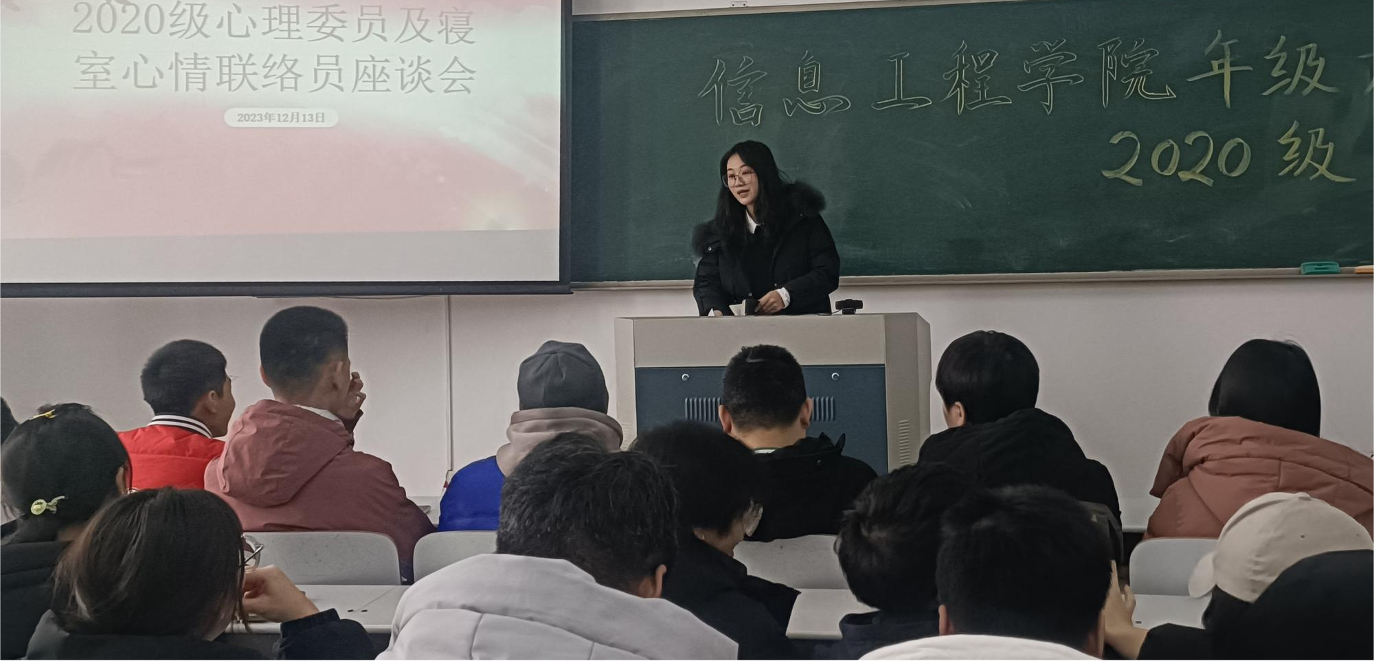 为全面了解学院学生心理健康状况,加强与心理委员、寝室心理联络员的沟通,营造积极健康向上的校园氛围。2023年12月12日、12月13日,信息工程学院召开了心理委员及寝室心理联络员座谈会。学院团委书记修恒哲、各年级辅导员及全体本科生参加本次座谈会。