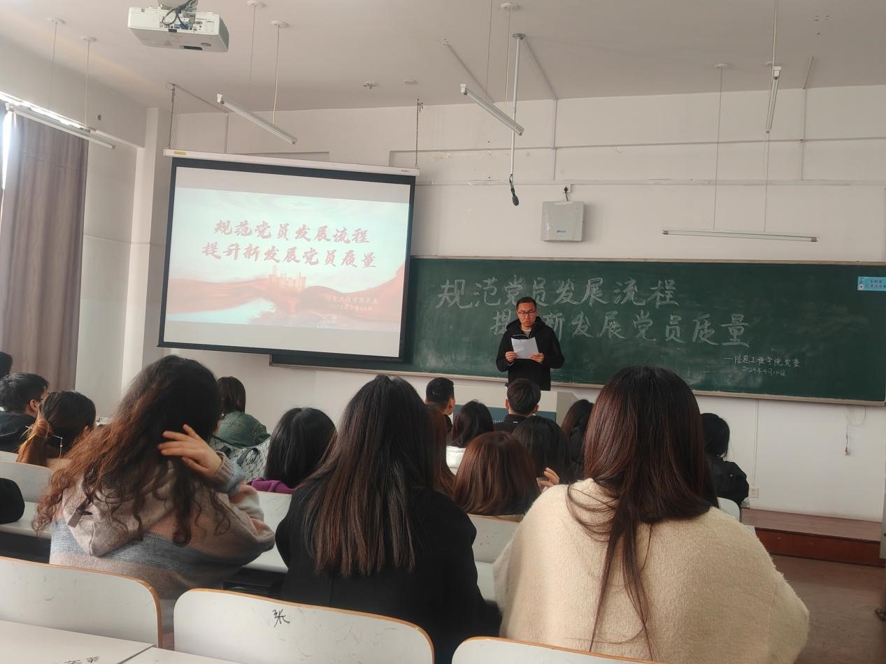 信息工程学院于2024年4月10日在獐子岛教学楼召开了以“规范党员发展流程,提升新发展党员质量”为主题的报告会。会议由党支部书记修恒哲主持并作主题报告,第十九期积极分子参加此次主题报告会。