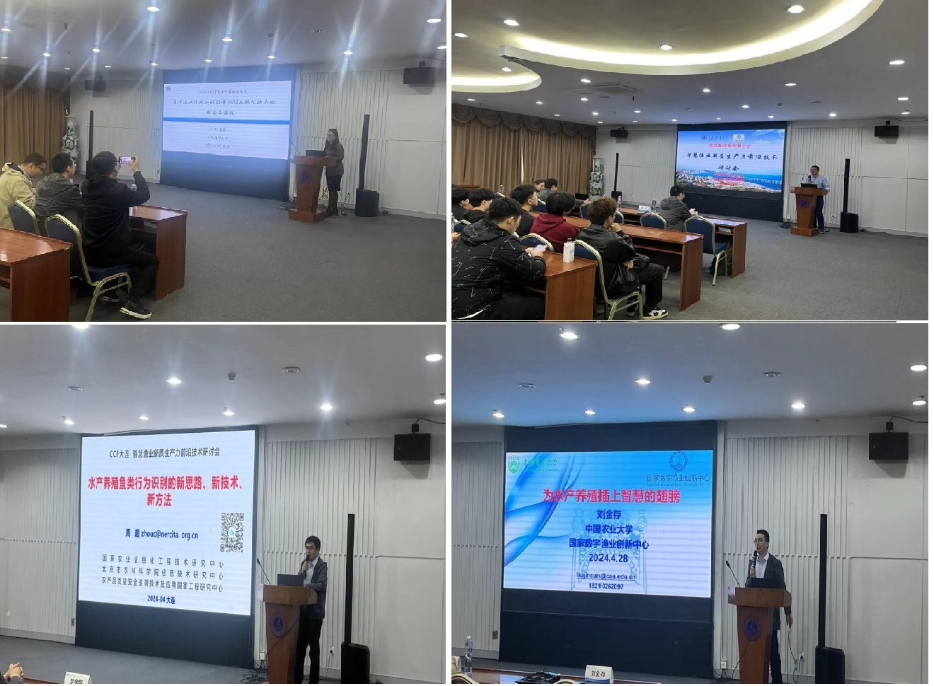 来自上海海洋大学的陈明教授、国家农业信息化工程技术研究中心的周超副研究员、中国农业大学的刘金存副教授和大连海洋大学于红教授分别以《水产数字化育种相关技术研究》、《水产养殖鱼类行为识别的新思路、新技术、新方法》、《为水产养殖插上智慧的翅膀》和《海洋渔业领域知识图谱与AI大模型融合的探索与实践》为主题分享报告。