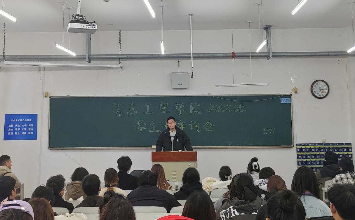 信息工程学院于2024年3月29日17:00在獐子岛教学楼召开信息工程学院2022级学生干部例会,2021级主席部长团、2022级全体学生干部参会。会议由李勃瑞主持。