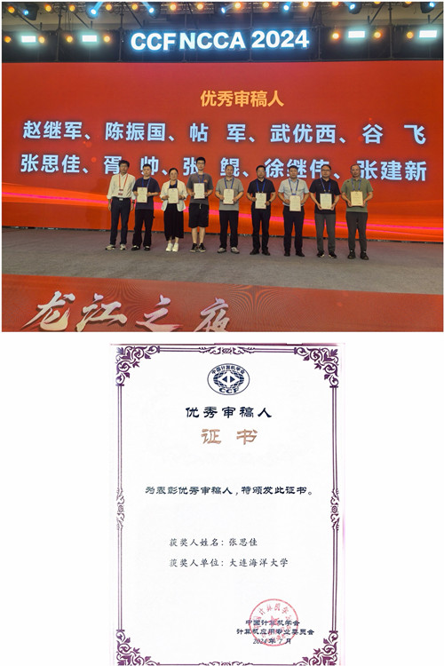 NCCA被评为中国科学技术协会重要学术会议指南推荐会议。大会现已发展成为CCF的重要学术交流会议之一。本届大会共收到有效投稿450余篇。信息工程学院计算机学科刘珈宁、电子信息领域刘吉航、张艺爔等3名研究生分别受邀进行大会论文宣讲。大数据专业教研室主任张思佳荣获CCF中国计算机应用大会优秀审稿人荣誉称号。