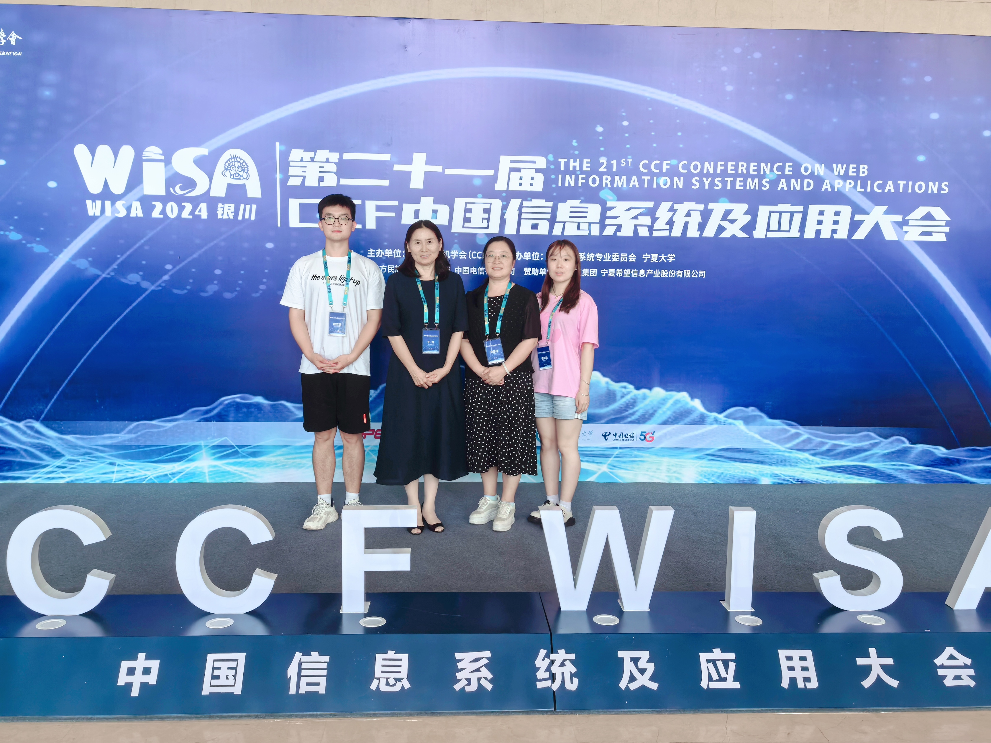 2024年8月2日-8月5日,第二十一届CCF中国信息系统及应用大会(WISA2024)在宁夏回族自治区银川市举办。信息工程学院院长于红、大数据专业教研室主任张思佳以及研究生曹佩荣、程志澳参加。