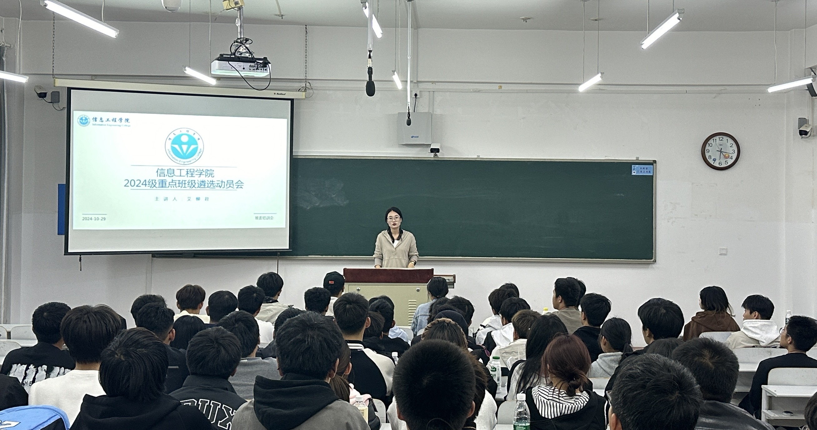 为进一步提升班委的工作自主性、管理能力和责任意识,持续推动学院学风建设,信息工程学院于2024年10月29日在獐子岛教学楼522教室召开2024级班委培训暨重点班级遴选动员会。2024级辅导员艾柳君、学生辅导员刘畅、王天震、班导师助理李诗阳以及2024级各班班委参加。会议由艾柳君主持。