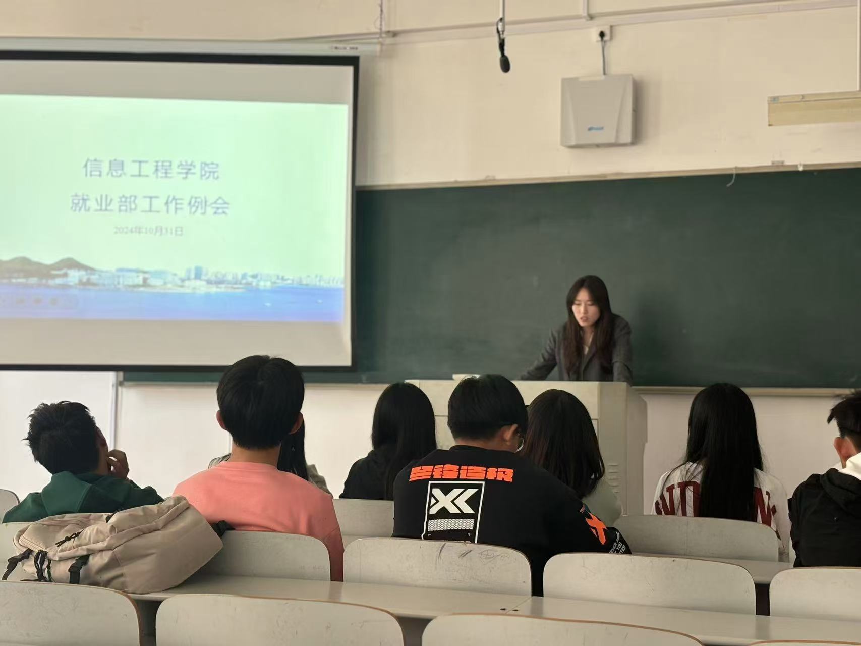 光阴流转,初心如磐。为提高部门工作效率和素质能力,增强就业部成员凝聚力,进一步明确新学期的工作方向和目标,信息工程学院于2024年10月31日在獐子岛教学楼107教室召开就业部工作会议。会议由黄曼玲主持。