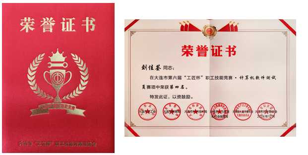近日,我院数据科学与大数据专业刘佳荟老师在第六届工匠杯暨全市计算机软件技能大赛中荣获第四名的好成绩,大连市“工匠杯”职工技能竞赛组委会为其颁发了获奖证书。