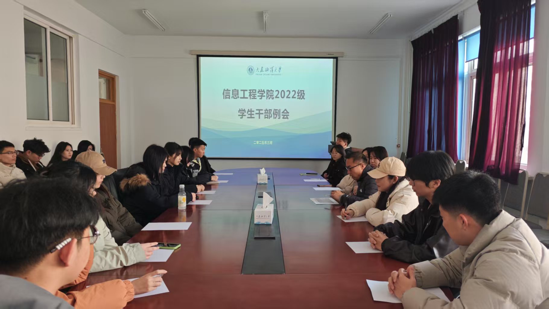 为明确新学期工作安排,推动学院学生工作高效有序开展,信息工程学院于2025年3月3日在北院综合行政楼S420召开2022级学生干部例会。团委书记修恒哲、2022级学生干部参会,会议由修恒哲主持。
