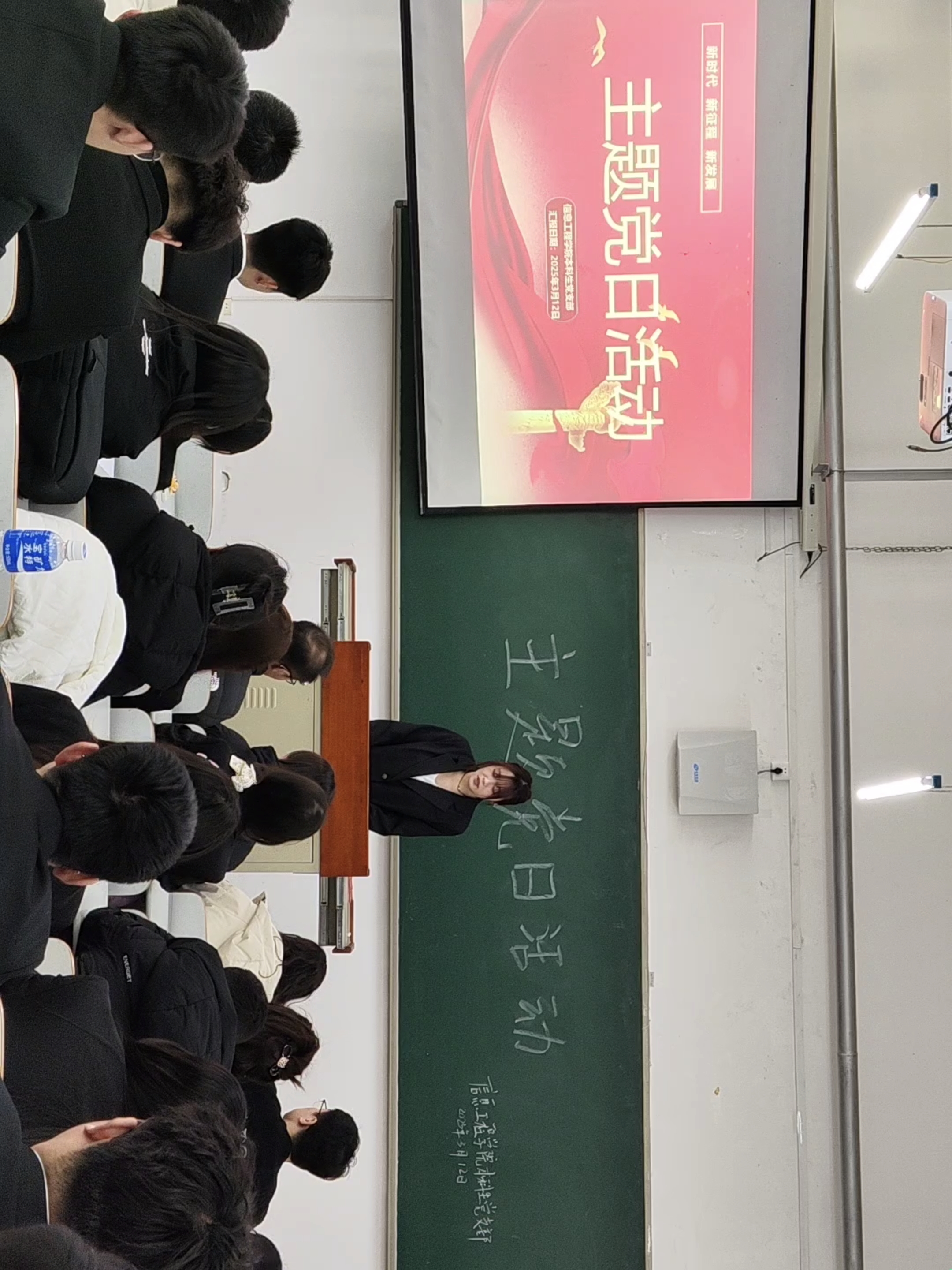 为不断增强基层党支部的凝聚力和战斗力,充分发挥党员的先锋模范作用,信息工程学院本科生党支部于3月12日在獐子岛教学楼104教室开展本科生党支部主题党日活动。学院党委副书记于洋、本科生党支部书记修恒哲、各年级辅导员及全体学生党员参加。会议由雷添惠主持。