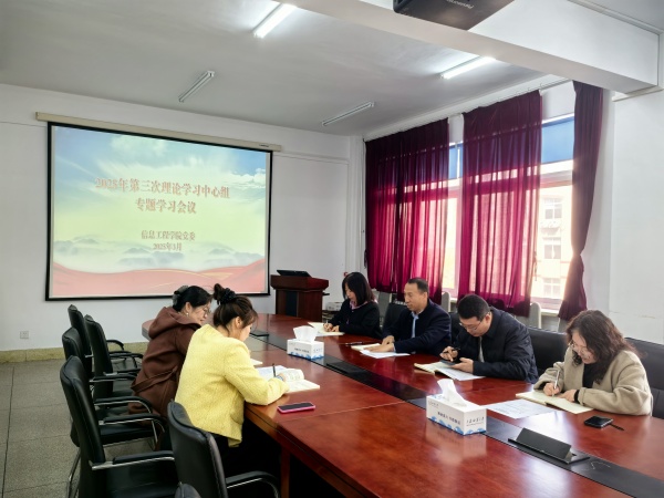 3月31日上午,信息工程学院党委在学院会议室召开2025年第三次理论学习中心组专题学习会议,理论学习中心组成员参加会议,会议由学院党委书记张永春主持。