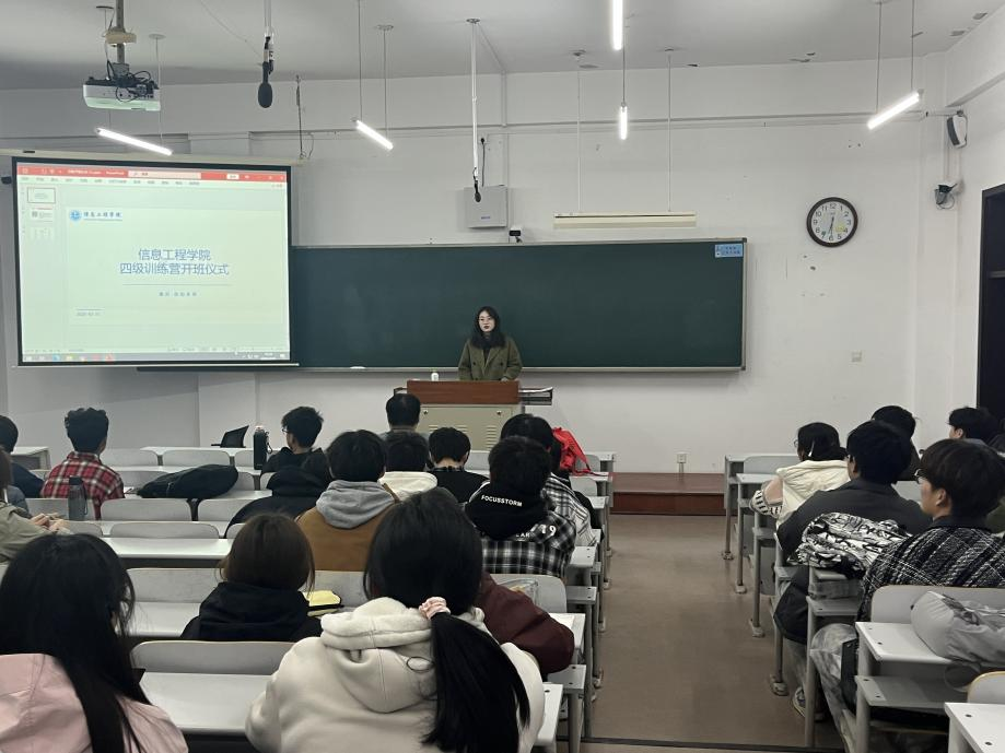 为助力信息学子提升英语水平,高效备考大学英语四级考试,提高学院大学英语四级通过率。3月31日信息工程学院在獐子岛教学楼509举行了大学英语四级备考冲刺班开班仪式。2024级报考大学英语四级考试的同学参加。本次开班仪式特邀经验丰富的英语教师进行备考指导。