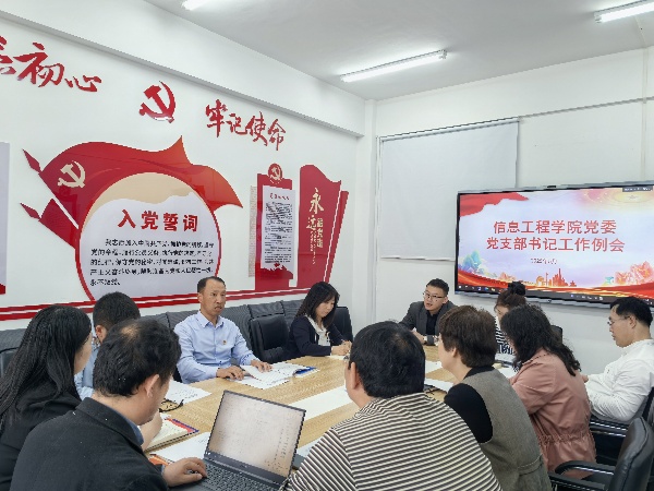 为深入学习贯彻中央八项规定精神,推进基层党组织作风建设与标准化规范化建设, 5月14日,信息工程学院党委召开党支部书记工作例会,学院党委委员、全体党支部书记及组织员参加会议,会议由党委书记张永春主持。