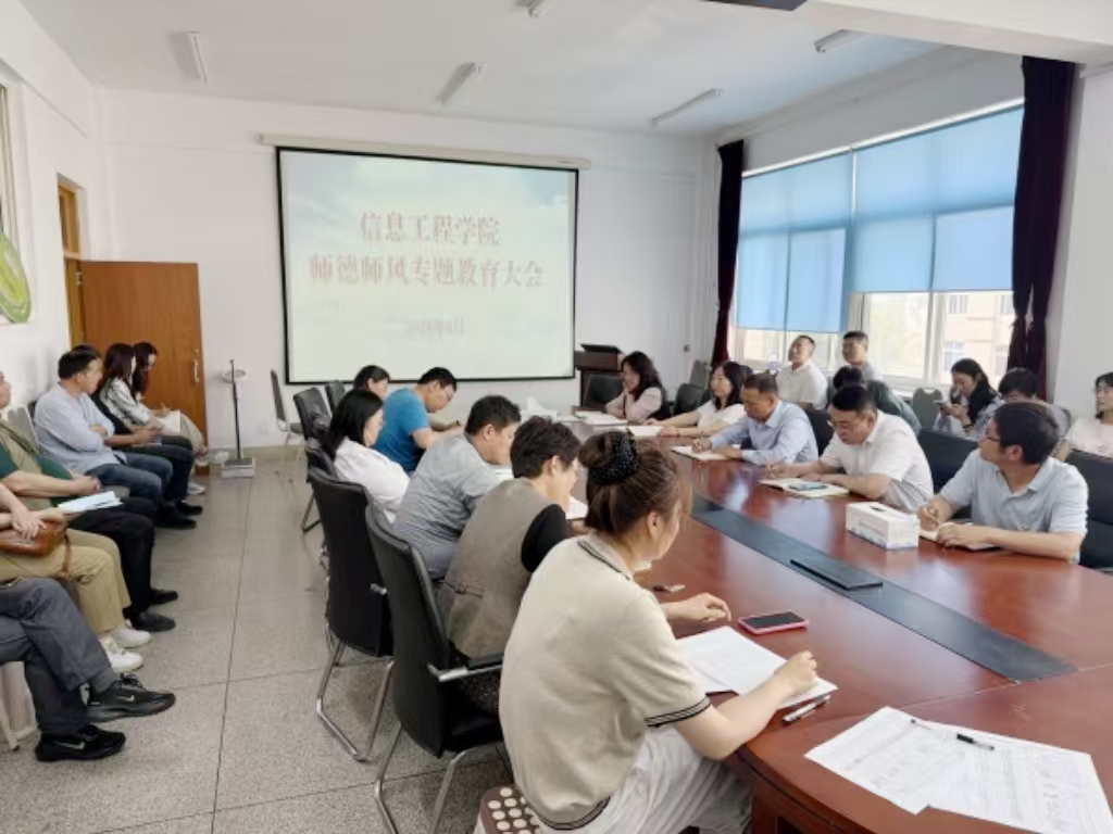 为推动深入贯彻中央八项规定精神学习教育走深走实,进一步加强师德师风建设,引领广大教师践行教育家精神,推动师德师风建设与教学实践、学生教育深度融合。6月11日,信息工程学院在学院会议室召开师德师风专题教育大会,会议由学院党委书记张永春主持,学院全体教职工参会。
